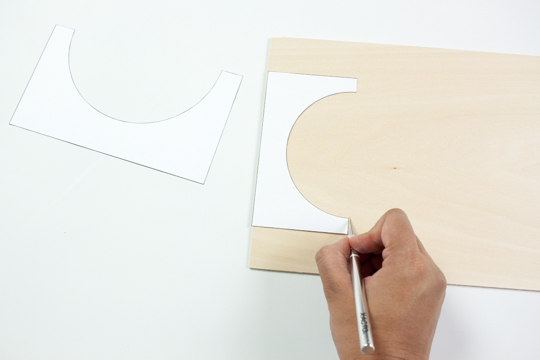 Place template over the piece of balsa wood and carefully cut using an xacto knife. *Tip: Start by simply tracing the template with the xacto. Then score the wood where you traced. It took me about 3-4 cuts to break through the wood.*